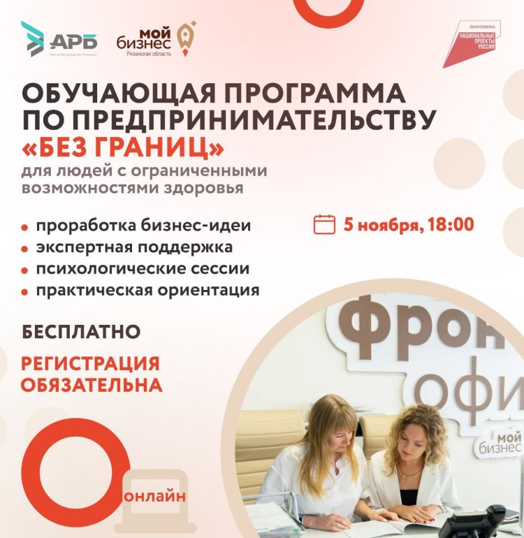 Агентство развития бизнеса Рязанской области объявляет о старте уникальной программы — акселератора «Без границ» для граждан с ограниченными возможностями здоровья. Проект направлен на поддержку предпринимательских инициатив и поможет участникам систематизировать свои бизнес-идеи или вывести существующие проекты на новый уровень.